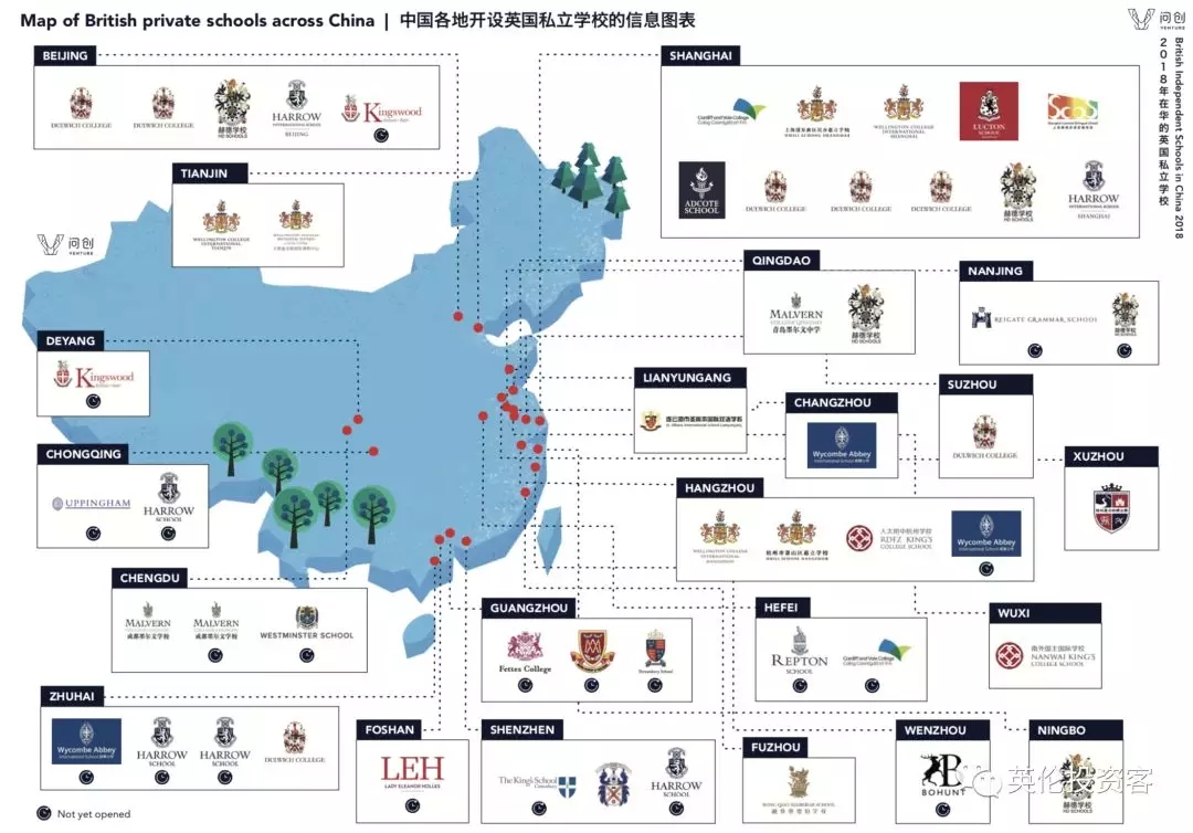 順著這些學校的名字一查,我才吃驚的發(fā)現(xiàn),英國私校校長早早就聞到了錢的味道,已經(jīng)悄悄把旗子插滿了中國。