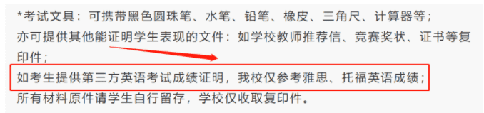 如果學(xué)生擁有托福(包含家庭版托福)或雅思成績,也可以選擇提交。